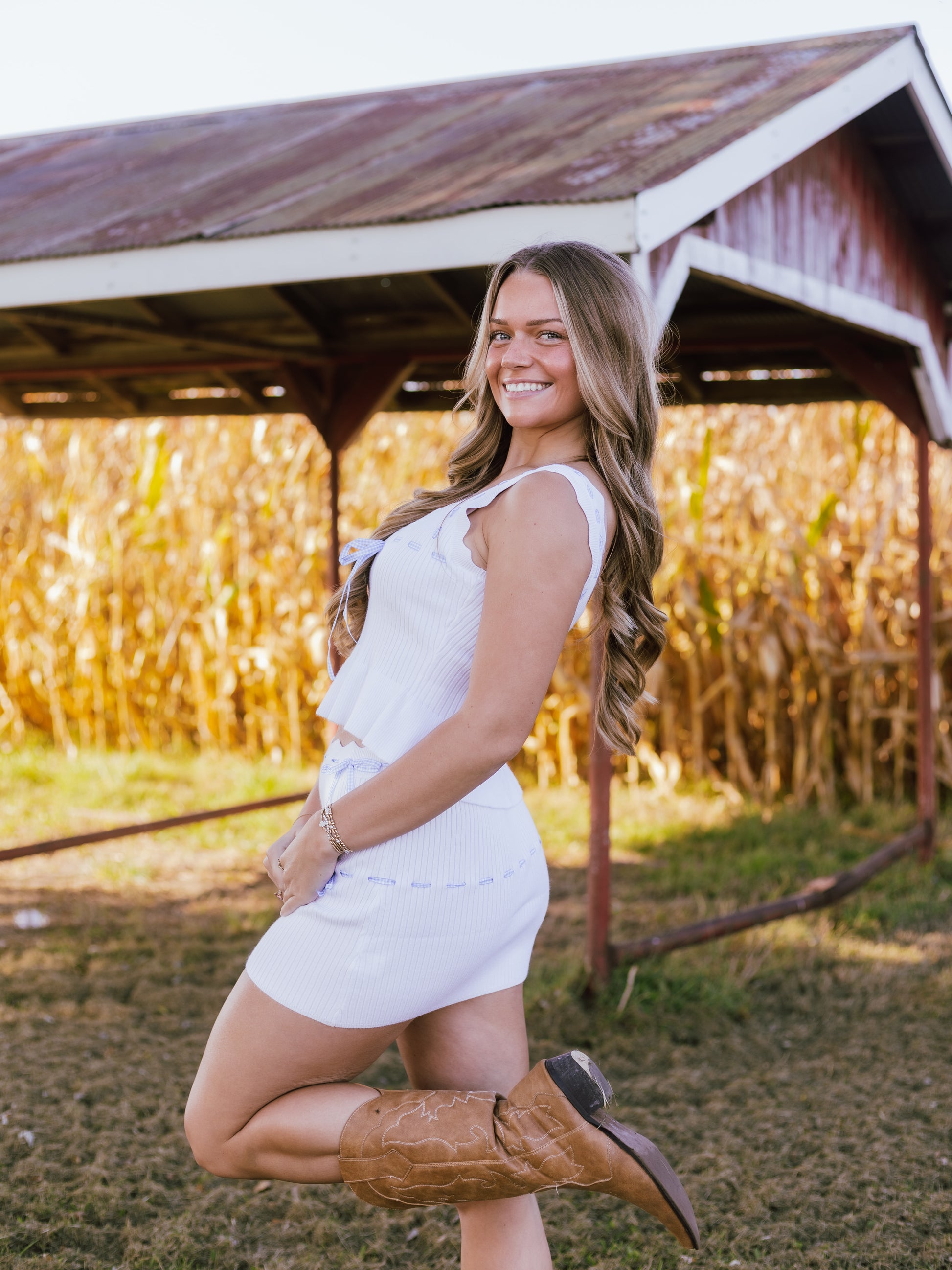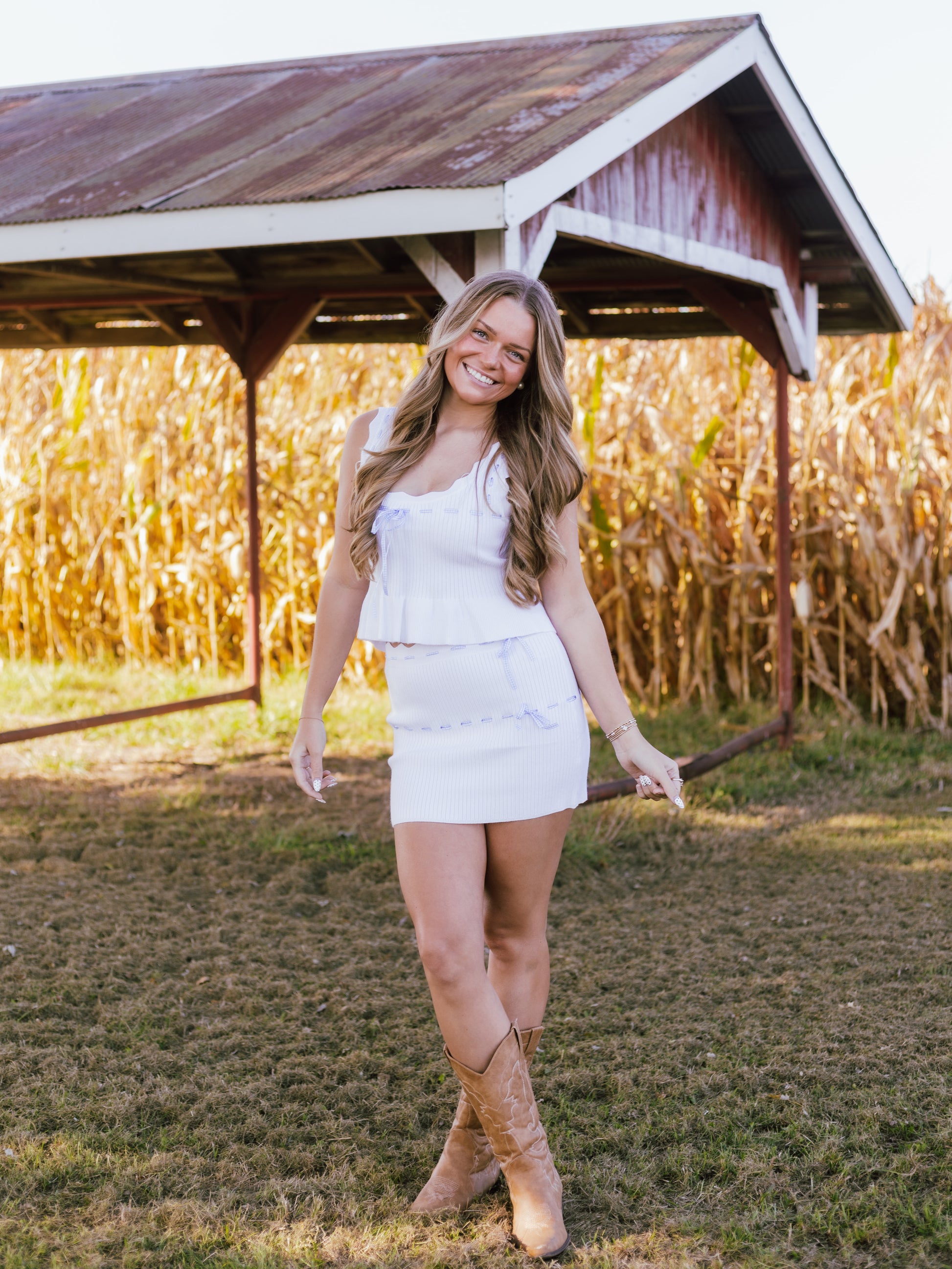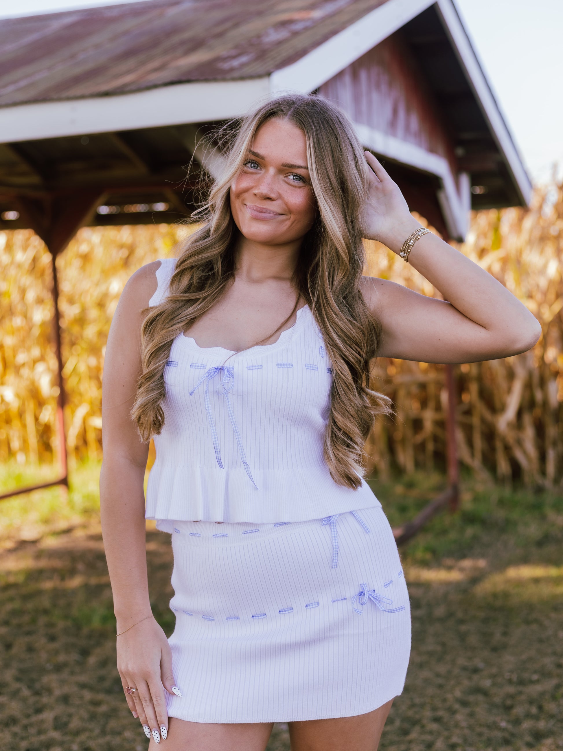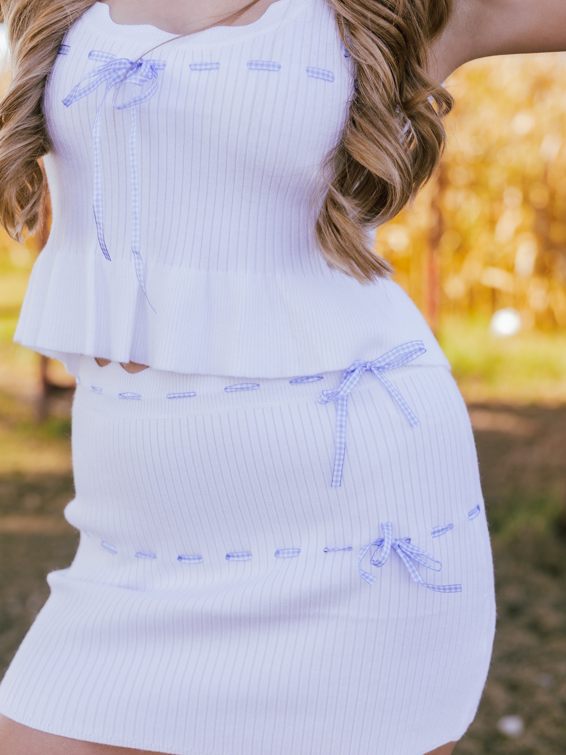 - High-waisted skirt with stretch fit and ribbon detail throughout