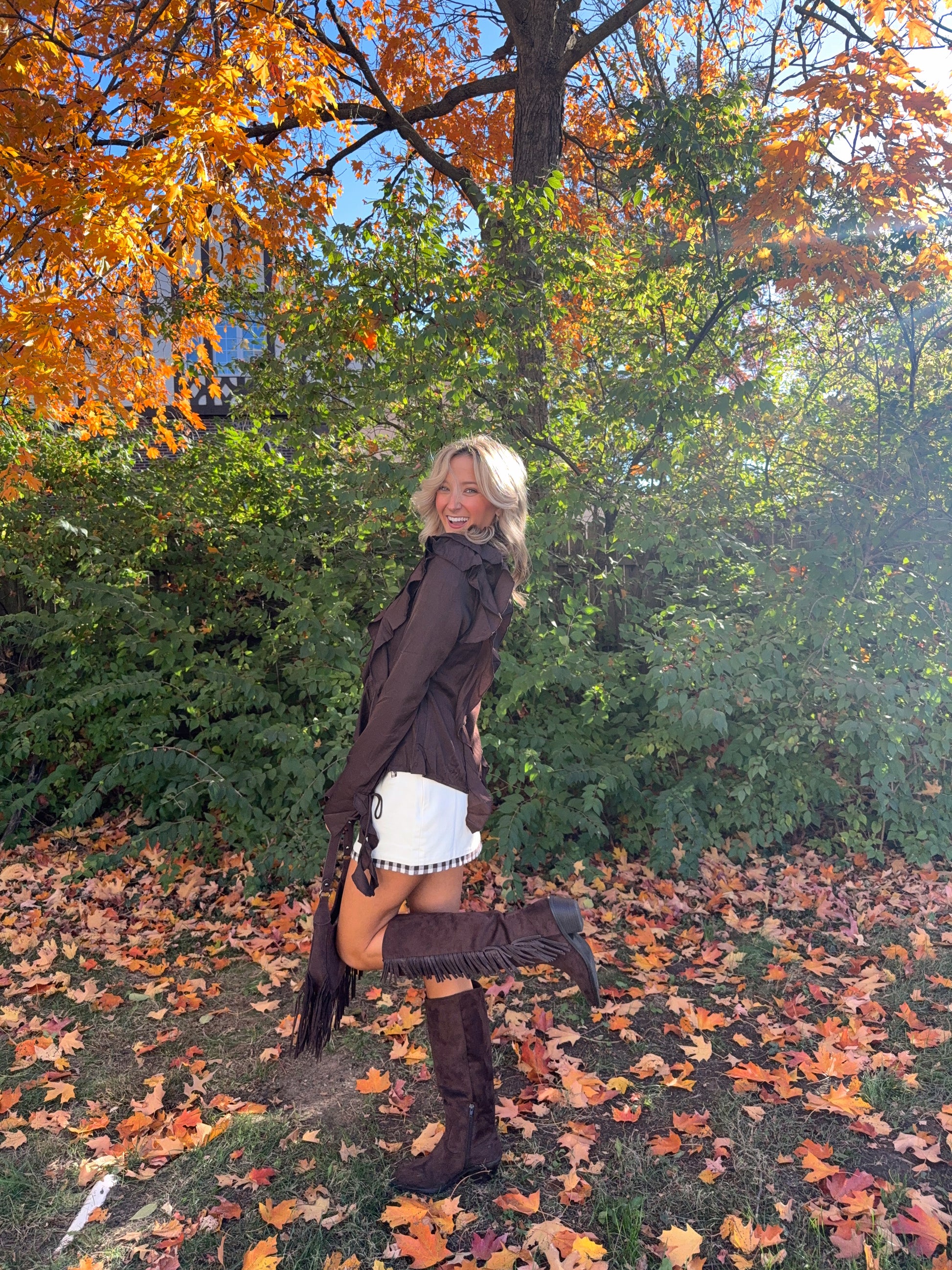 - Slightly cropped length — perfect for pairing with denim or mini skirts