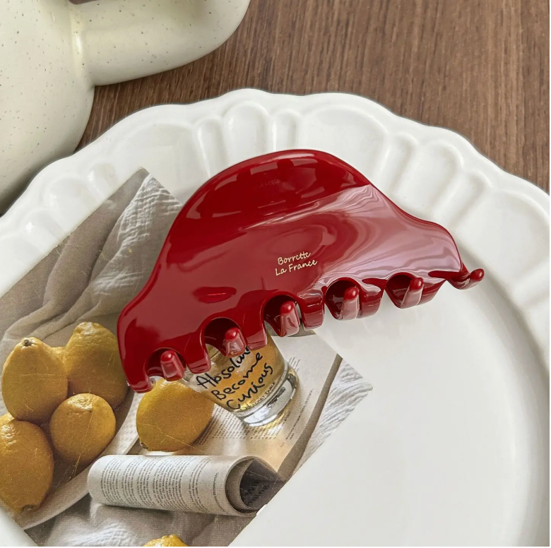 Description: A rich, glossy red claw clip — bold, sleek, and effortlessly chic.