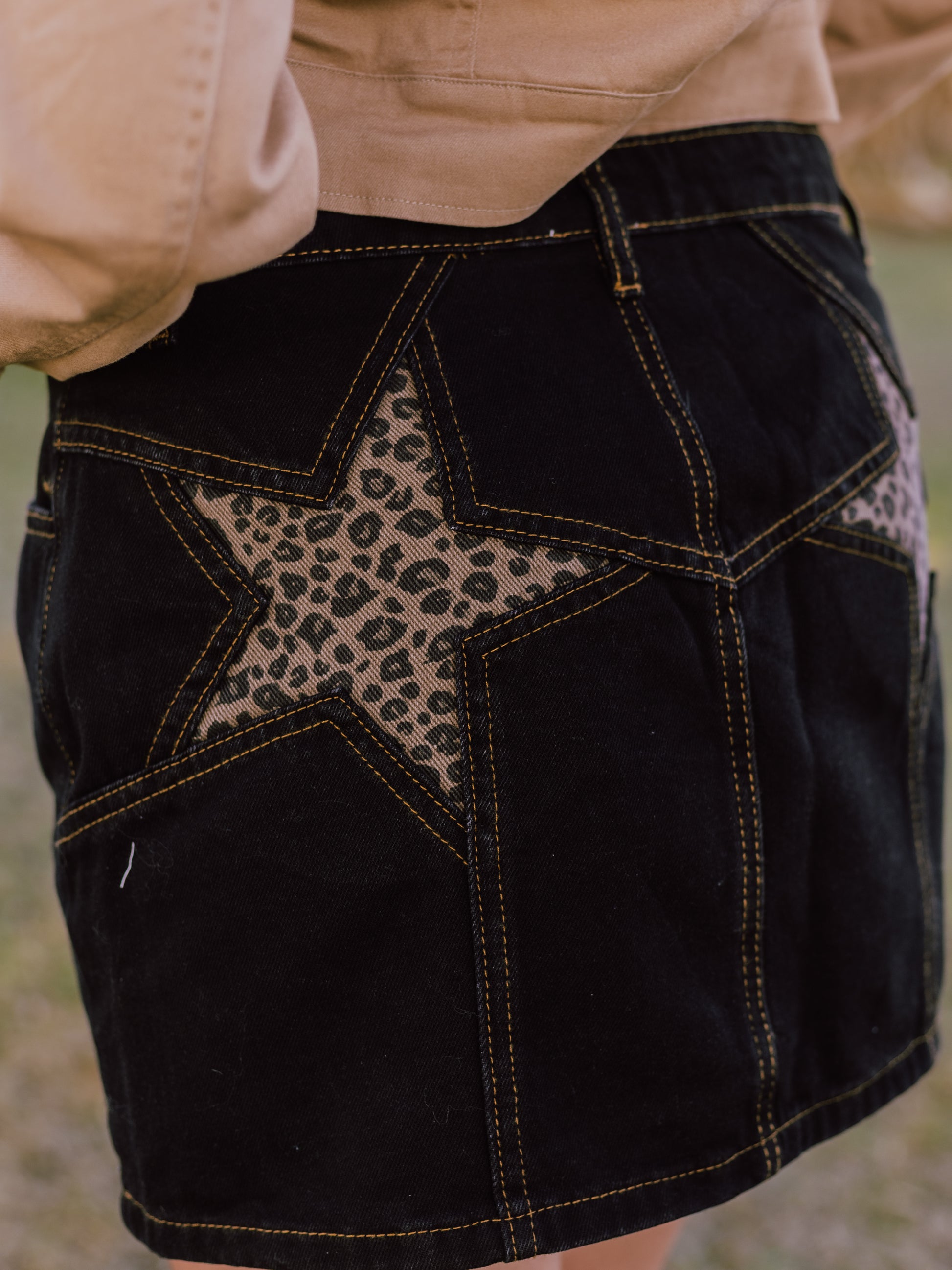 - Leopard-print star patch accents on the back for a bold, playful touch