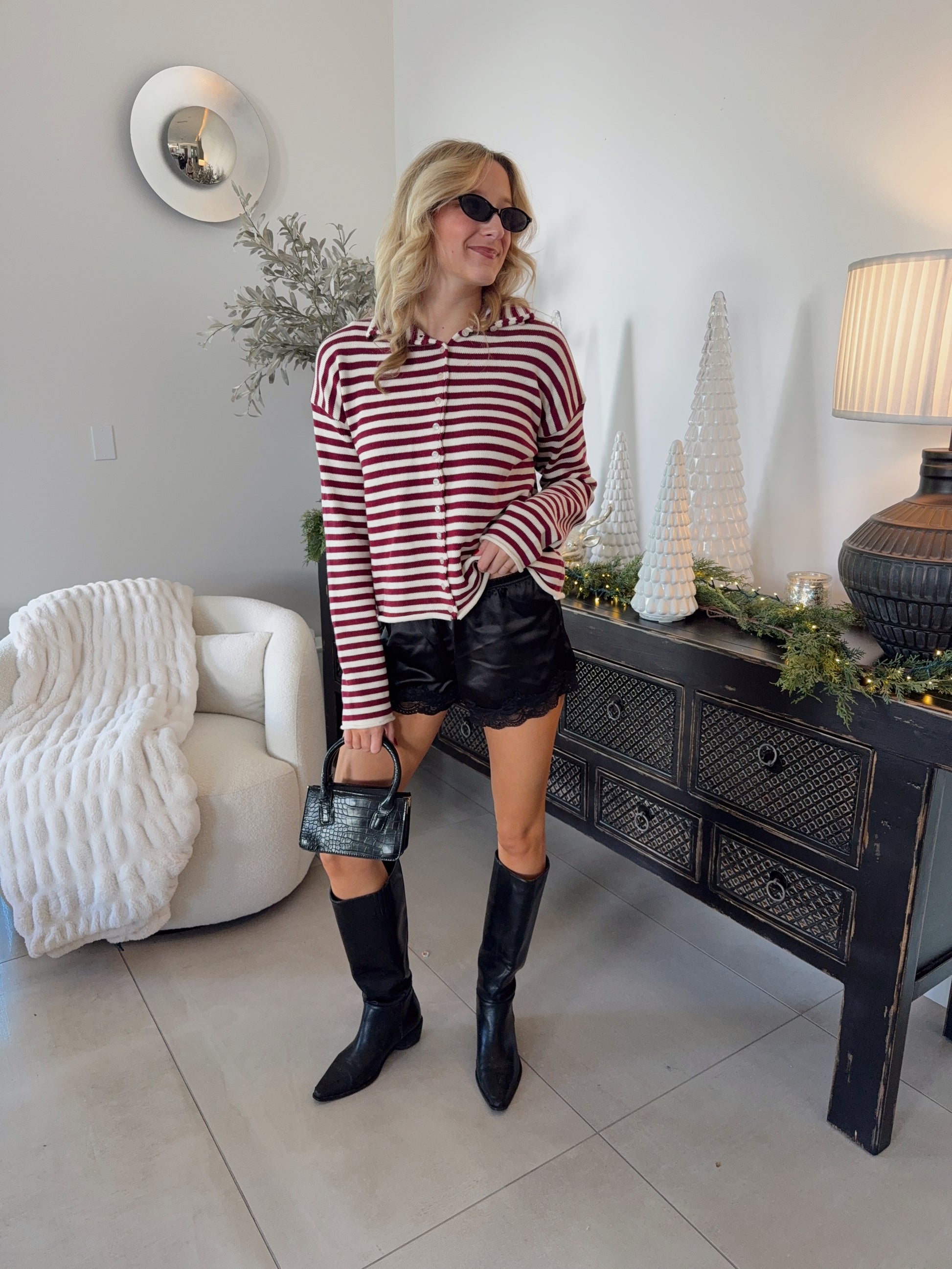 - Luxe satin shorts with delicate lace trim for a flirty, elevated look