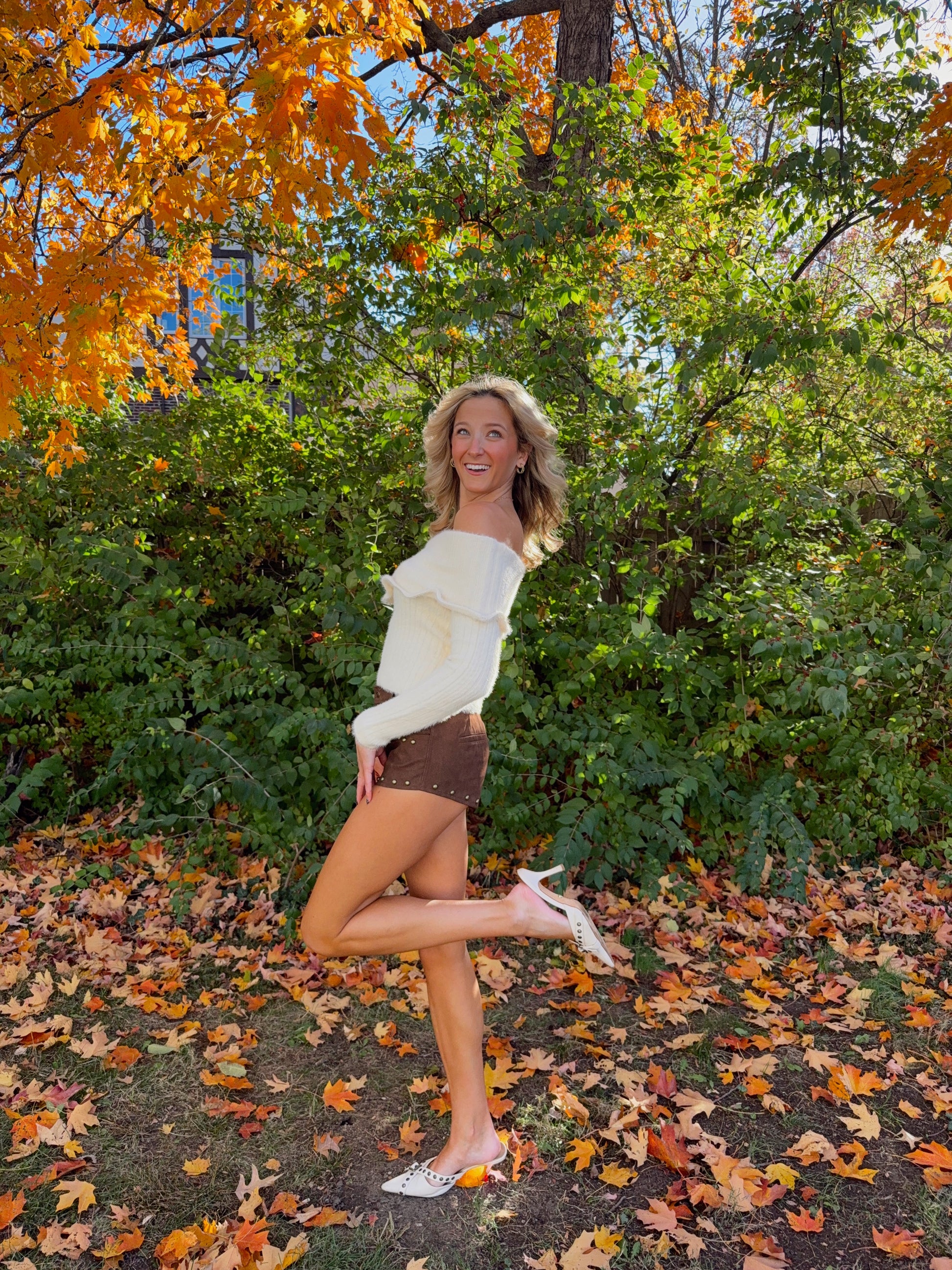 - Western-inspired faux suede shorts with gold stud detailing for a flirty, festival-ready look.